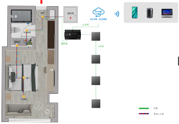 极“智”美好,不负热爱。新一代奥莱维DALI智能调光客房解决方案,带来更智能的旅居体验。DALI智能网关作为物联网的核心设备,对接云端控制系统和所有的硬件产品。配合移动端对接微信平台,无需下载APP。用户可以通过多种方式绑定设备并进行控制。DALI调光灯具电源和控制线回路相对独立,可根据不同需求进行灯光组合。灯具控制线无需按照回路走线,一条总线连接所有DALI调光灯具即可,设备总数不超过64个,降本增效的首选。
